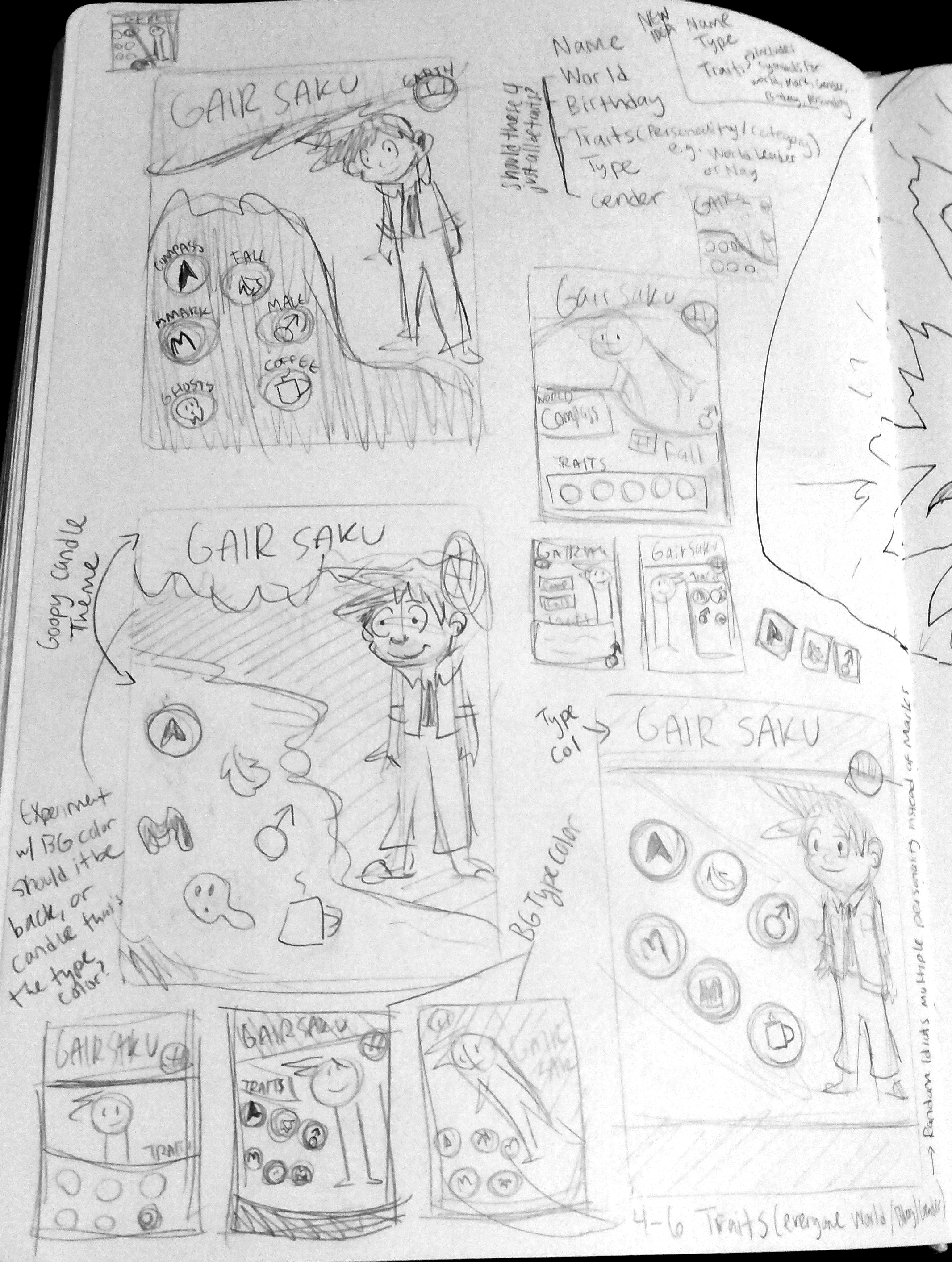 Then I started to digitize those and come up with new ideas. I was starting to like the idea of having a straight line that all of the traits are in, to keep them organized in one row rather than pairing them up. It felt a lot cleaner to me.